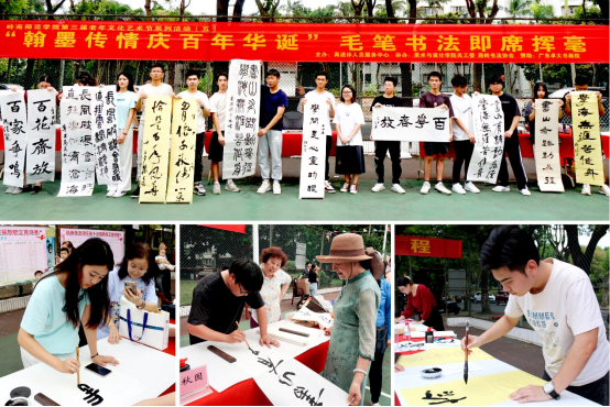 岭师新闻中心讯:10月30日下午,学校第三届老年文化艺术节系列活动之(五)——“翰墨传情庆百年华诞”毛笔书法即席挥毫活动在燕岭区排球场举行,上演了一场别致的艺术盛宴。学校党委副书记黄达海出席活动。即席挥毫活动由离退休人员服务中心党委书记、主任欧海清主持。