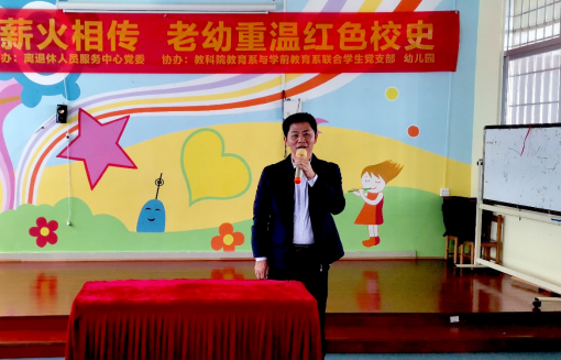 离退休人员服务中心党委书记、主任欧海清指出,在中国共产党成立100周年的重要历史时刻,举办这个系列活动的目的就是为了从红色校史人物身上感受他们的家国情怀和革命思想,感悟他们身上体现出来的“坚持真理、坚守理想,践行初心、担当使命,不怕牺牲、英勇斗争,对党忠诚、不负人民”的伟大建党精神。他表示,幼儿园老师要在平时的学习生活情景中找准切入点,用生动活泼的故事,以简单易懂的话语教会孩子们其中的含义,让伟大建党精神根植在孩子心中,在他们以后的学习、工作、生活中释放出磅礴的力量,助力他们健康成长、顺利成才,让校史人物的革命精神