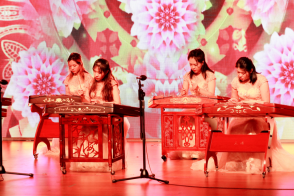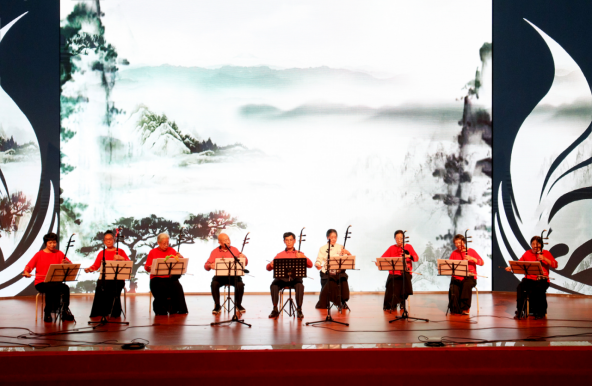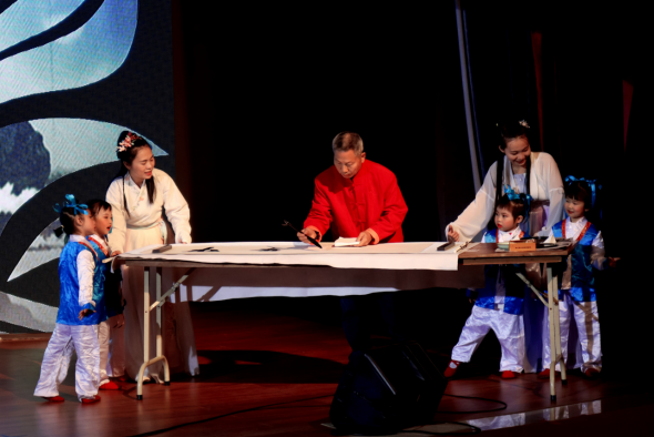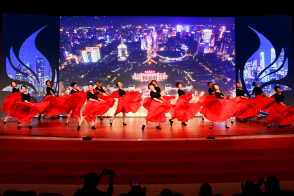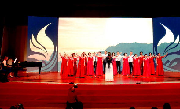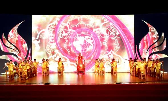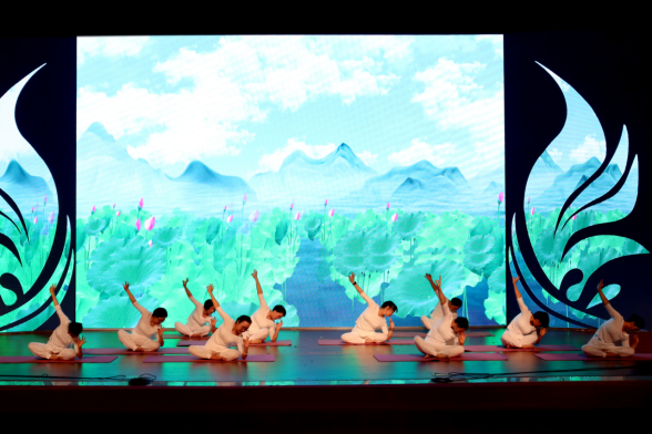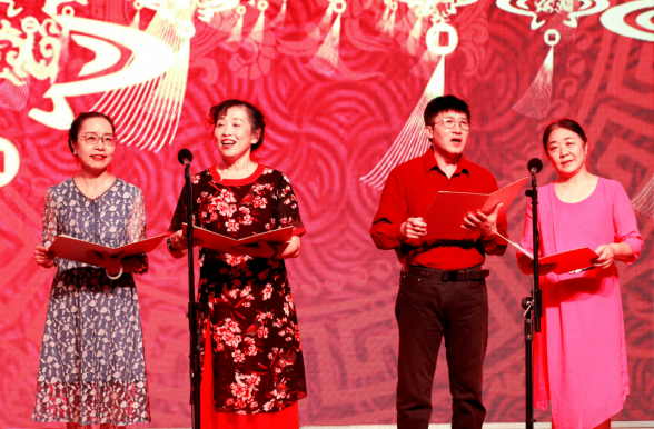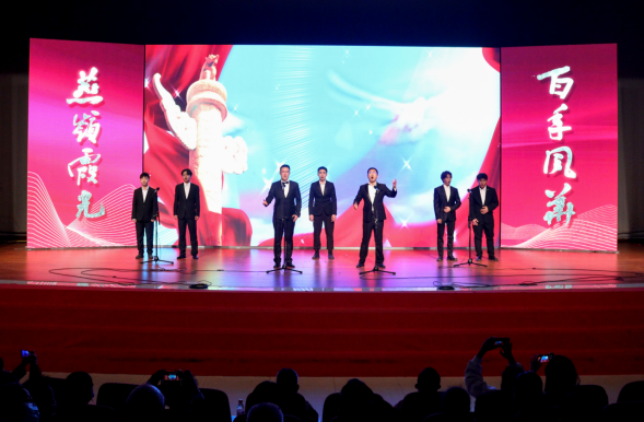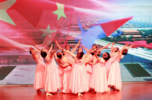 “扬琴重奏、葫芦丝齐奏、配乐诗朗诵、舞韵瑜伽……”伴随着阵阵掌声和欢呼声,丰富多彩的文艺节目汇演在音乐厅舞台上演。舞蹈表演《说唱中国红》让观众感受到蓬勃的朝气和青春的气息;扬琴重奏《映山红》行云流水般的弹奏娓娓奏出了对党的真挚情感;退休女教职工用曼妙的舞姿表演舞蹈《万疆》,舞出一腔爱国之情;舞蹈瑜伽表演《莲花》淋漓尽致地舞出了师范学府的百年韵味,展现了岭师深厚的文化底蕴;老幼同台即席挥毫伴舞《中华孝道》,展示了中华文化和中华精神的传统精华;大合唱《光荣与梦想》深情礼赞建党百年光辉历程,表达了大家对未来美好生活的向往与祝愿……欢快的歌声唱不尽我们在燕岭大地生活的美好,优美的诗词诵不完我们对党无限的赞美。
