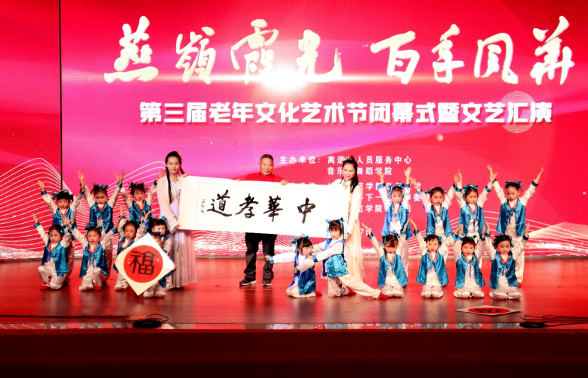 “燕岭霞光,百年风华。今天我们以文艺汇演的形式庆祝学校第三届老年文化艺术节成功举办、胜利闭幕!”黄达海对老年文化艺术节活动的成功举办表示祝贺,对组织、参与活动的广大教职工和离退休老前辈们表示感谢。黄达海指出,第三届老年文化艺术节紧紧围绕庆祝建党100周年这条主线,推出了“游园活动、集体庆生、新书首发、养生讲座、即席挥毫、校史重温、智慧助老、书画影展、文艺汇演”等9个系列文化艺术活动。活动历时两个月,在燕岭大地搭建了“丰富生活、陶冶情操、愉悦身心、才艺展示”的平台,充分展示了学校离退休教职工的新风采,树立了当代岭师老年人的新形象,赢得了全校师生的广泛赞誉。