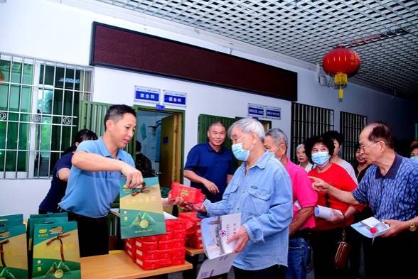 老同志开心领取活动小礼品