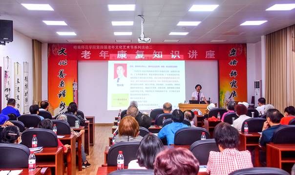 11月7日下午,学校第四届老年文化艺术节系列活动之二——老年康复知识讲座在老干会议室举行。湛江市岭南骨科医院副院长朱明等专家团队为现场近百名离退休教职工作了老年康复知识讲座,并开展公益健康管理咨询和保健理疗活动。讲座由离退休人员服务中心党委书记、主任欧海清主持。