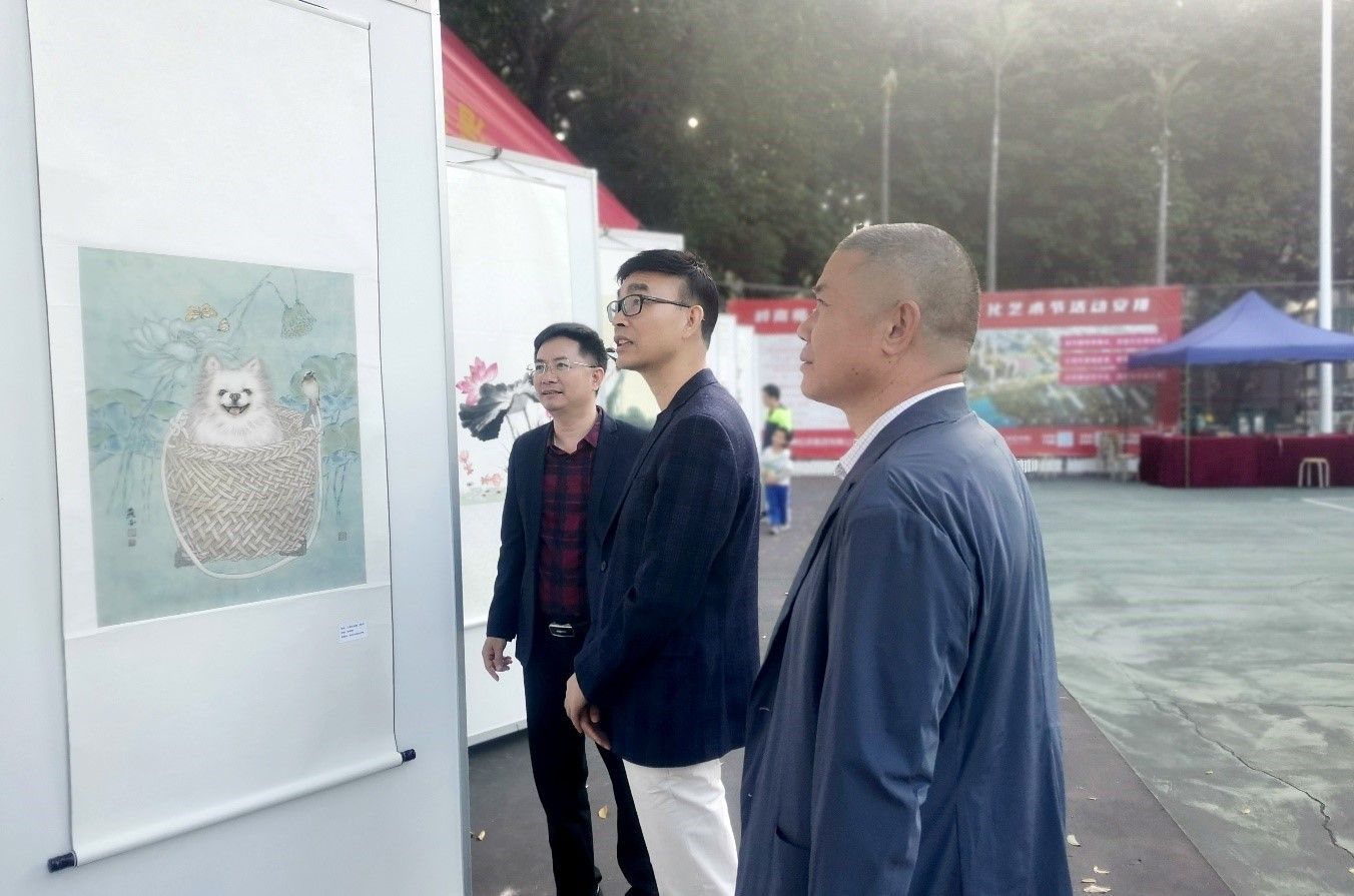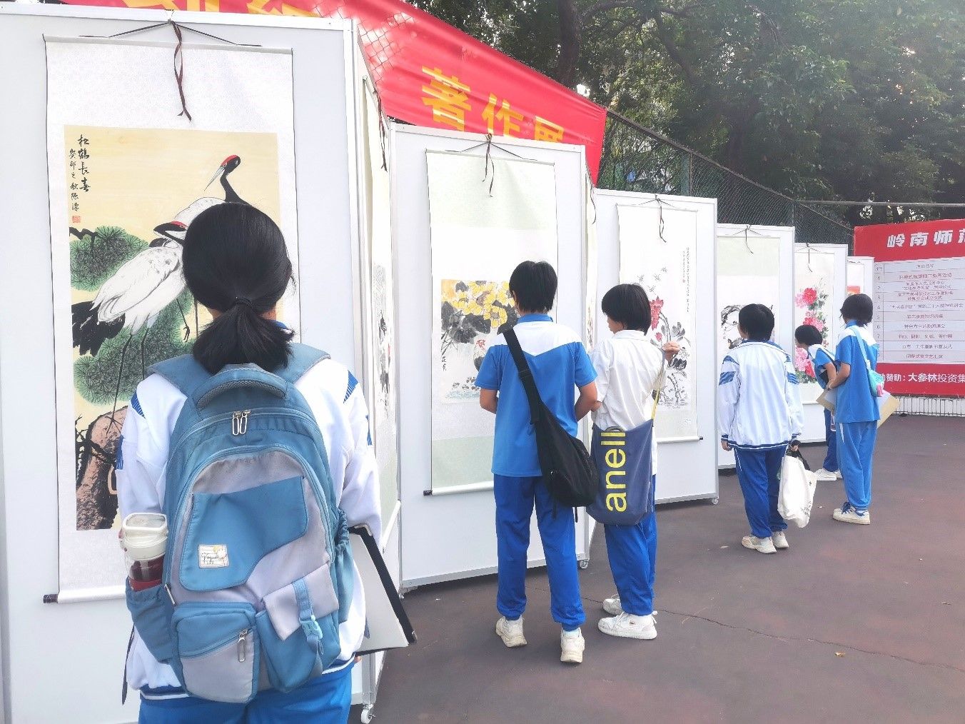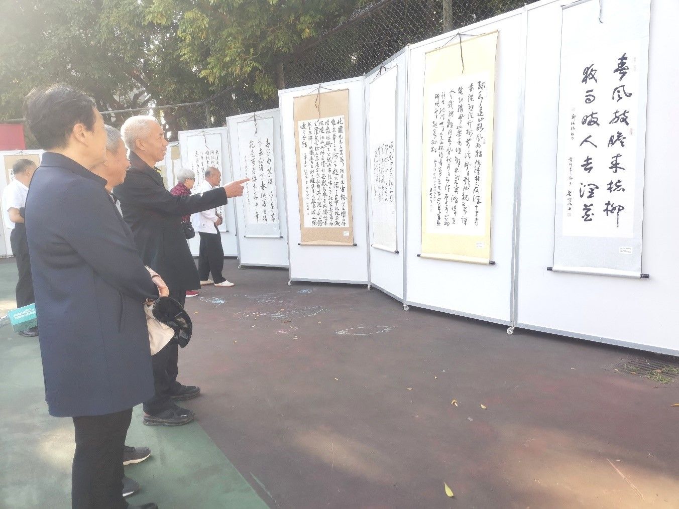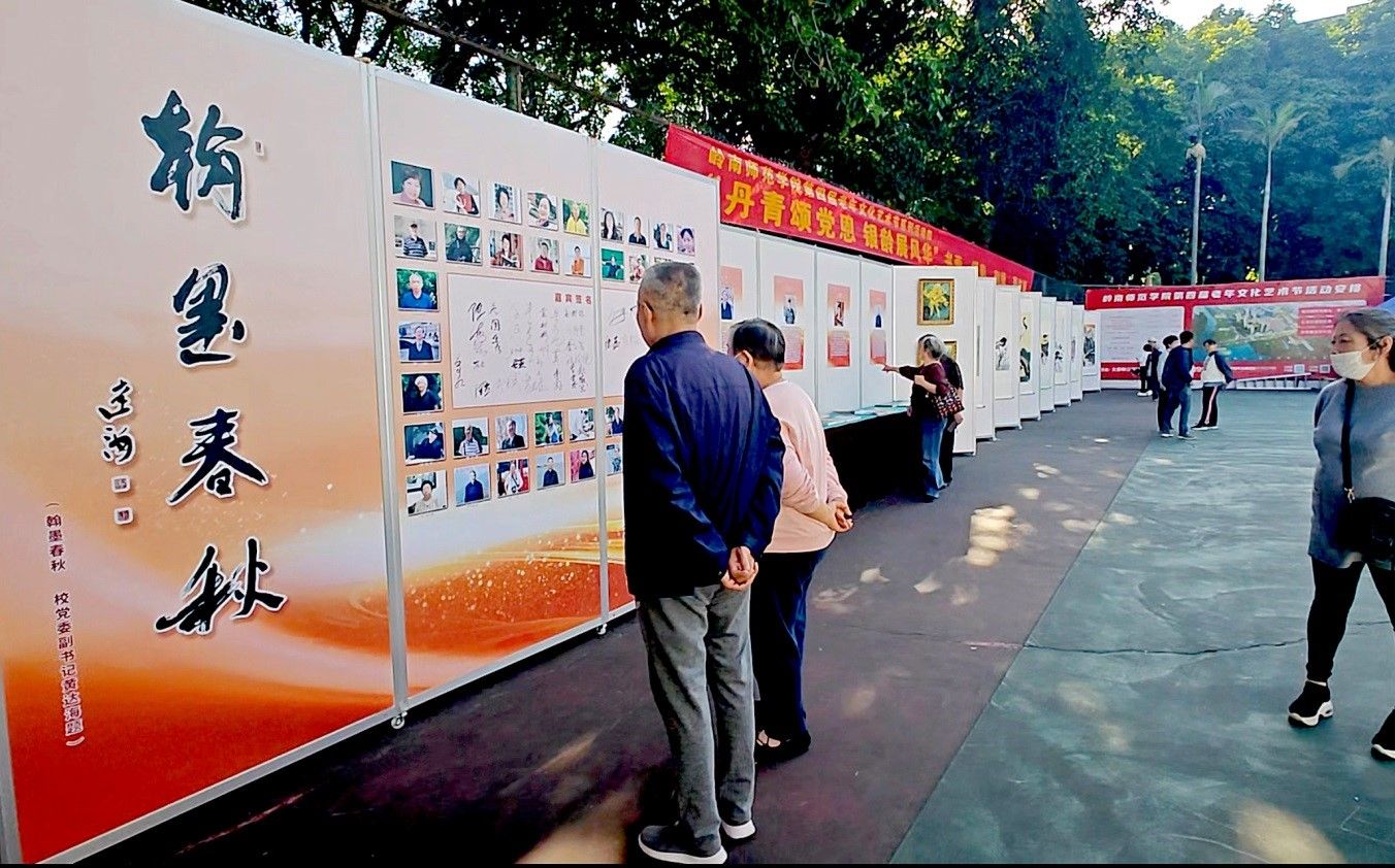 开展前,学校党委副书记黄达海专门为展览题写了“翰墨春秋”,以表达对广大离退休老同志一年四季坚持书画摄影、潜心笔耕创作的赞赏。他还特意来到现场进行观展指导,对展览给予高度评价。他指出,此次展览的筹划组织、作品质量、布展水平都有很大进步。广大老同志积极参与,认真创作,踊跃投稿,展现了岭师老同志深厚的文化底蕴和较高的艺术水准,也较好的展现了学校文化养老工作取得的丰硕成果。他强调,离退休人员服务中心不但要把室外展览办好,下步还要继续在室内推出展览,要让学校更多的师生参观学习,共享文化养老的成果,推进“广东省老年大学示范校”的建设。