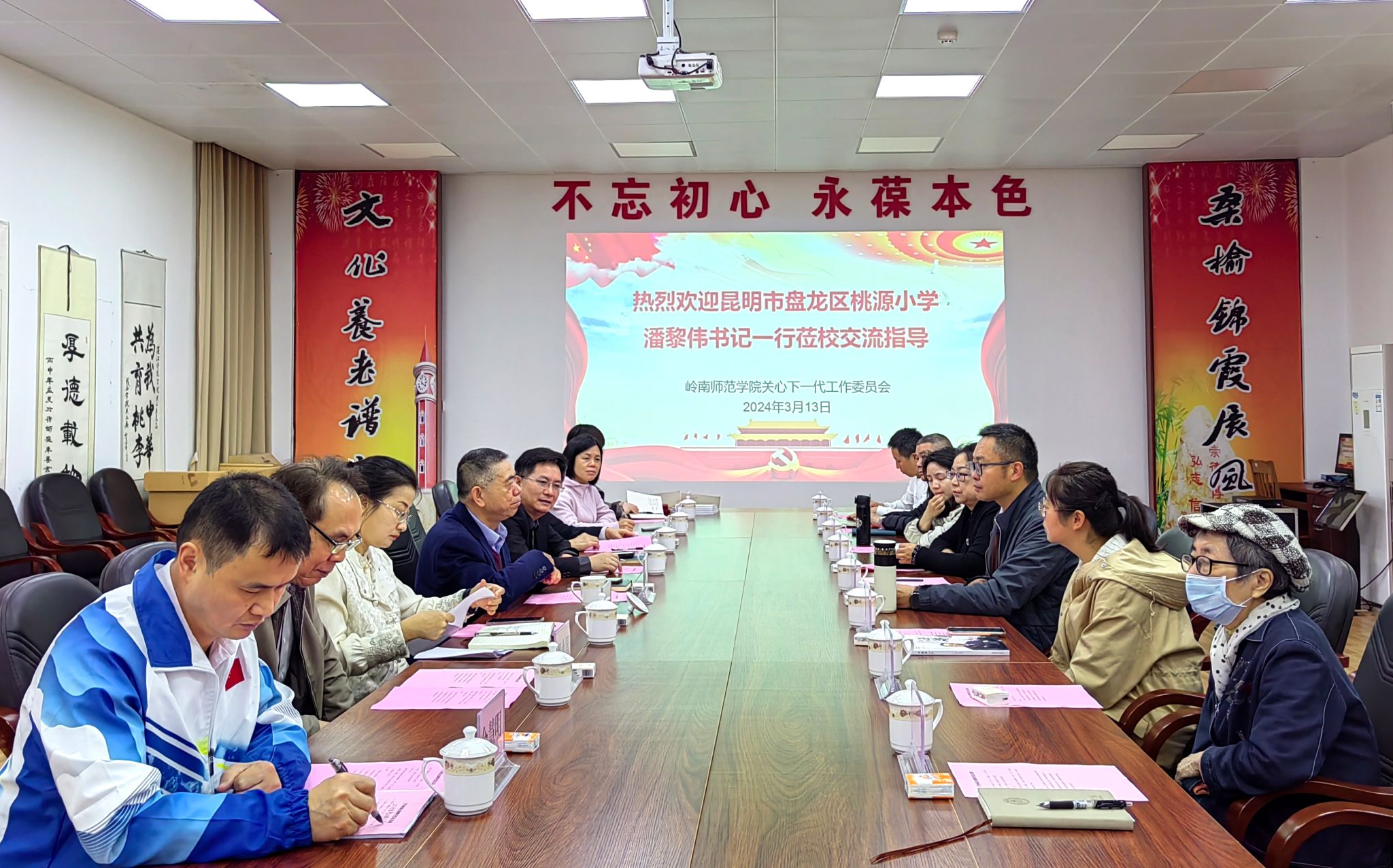 313日上午,昆明市盘龙区桃源小学校长潘黎伟带领杜明、肖芙、陀跃娟老师一行4人莅临校关工委研讨交流“海涛爷爷教你学写作”课程建设和校园文化建设等问题,并举行“刘海涛名师工作室”研究员聘任仪式。会议由学校关工委主任刘海涛教授主持。