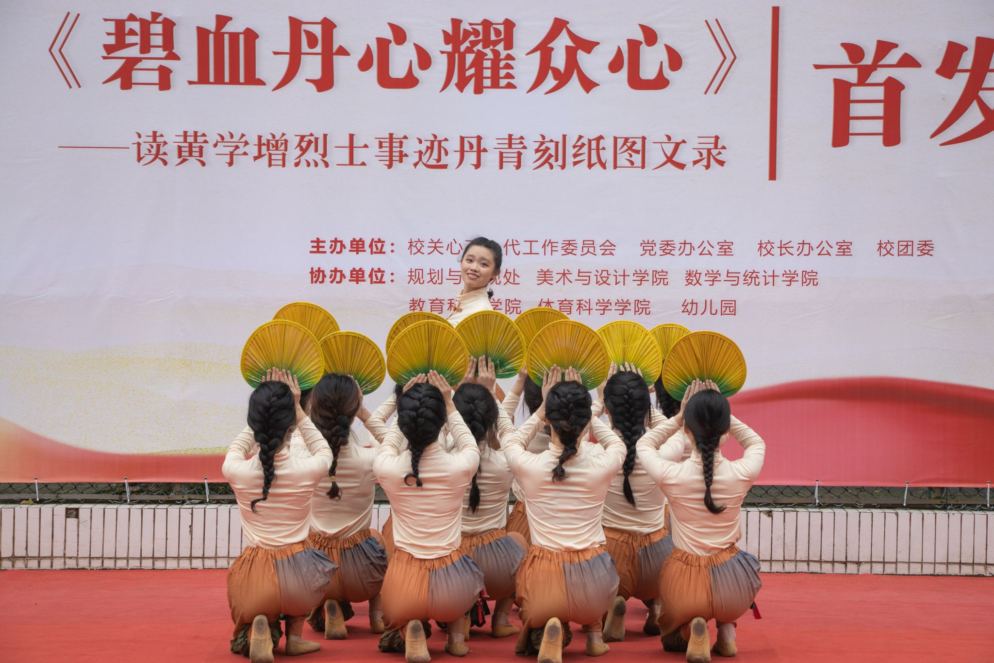 活动现场,武术《南路先驱》、献画《革命的友谊》等舞台表演展现着红色文化,丹青刻纸《澎湃》等一幅幅栩栩如生的作品诉说着红色故事。现场还开设了流芳文化协会学生刻纸作品图文展、流芳文化协会书法展、“朝阳读书会”读书展、法治教育展等丰富多彩的展区,吸引了师生群众围观。广大师生通过丹青刻纸这一传统艺术载体,追忆岭师校友黄学增烈士的光辉事迹,从守正创新的丹青刻纸里,大家一同探寻百年党史的“精神密码”,凝聚“红色力量”、绘制“红色画卷”。