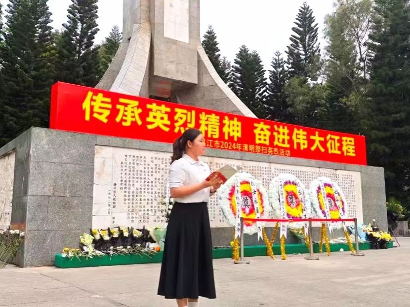 今年3月份,由94岁高龄的郑光华老师主编的《碧血丹心耀众心——读黄学增烈士事迹丹青刻纸图文录》正式出版首发。该书是郑老师组织指导读书班的同学在两年多的时间里学习党史当中的校史,学习习近平坚持以人民为中心的创作导向,集体运用丹青刻纸艺术刻绘黄学增烈士英雄事迹的图文录,是同学们共同学习、共同努力的智慧结晶。新书出版首发后,郑老师多次利用周六休息时间组织读书班学生开展共读《碧血丹心耀众心——读黄学增烈士事迹丹青刻纸图文录》活动。她考虑到部分学生作者已经毕业,又将图书逐一邮寄,确保每位作者都能拿到图书。为深入学习黄学增烈士精神,郑老师还专门召集数学与统计学院、教育科学学院、商学院、体育科学学院部分学生前往湛江市烈士陵园开展读书宣誓活动,引导学生走进伟大烈士黄学增的一生,感受那段波澜壮阔的革命历史。