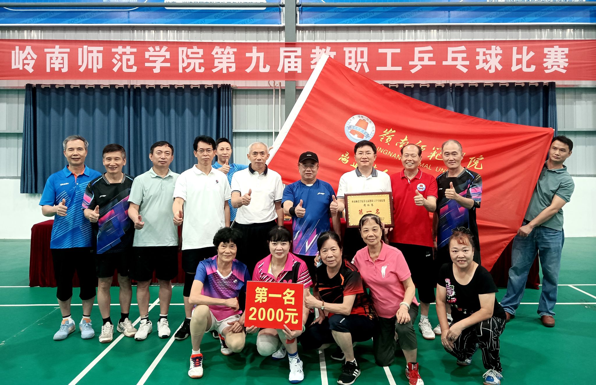 5月17日至19日,岭南师范学院第九届教职工乒乓球比赛在乒乓球馆举行。离退休人员服务中心组织了以党委书记、主任欧海清为领队,原学校副校长刘周堂为教练,宋立民、钟炳辉、莫凤珊、邓明、陈绍钧、蔡春晖、洪玲娜、陈秀珍、刘华、劳晓微等10名老同志为运动员的老干队参赛。经过分组循环赛和交叉淘汰赛两个环节紧张的激烈角逐,老干队成功卫冕冠军,实现“四连冠”。副校长苏古发为离退休人员服务中心乒乓球队颁奖,并表示祝贺。