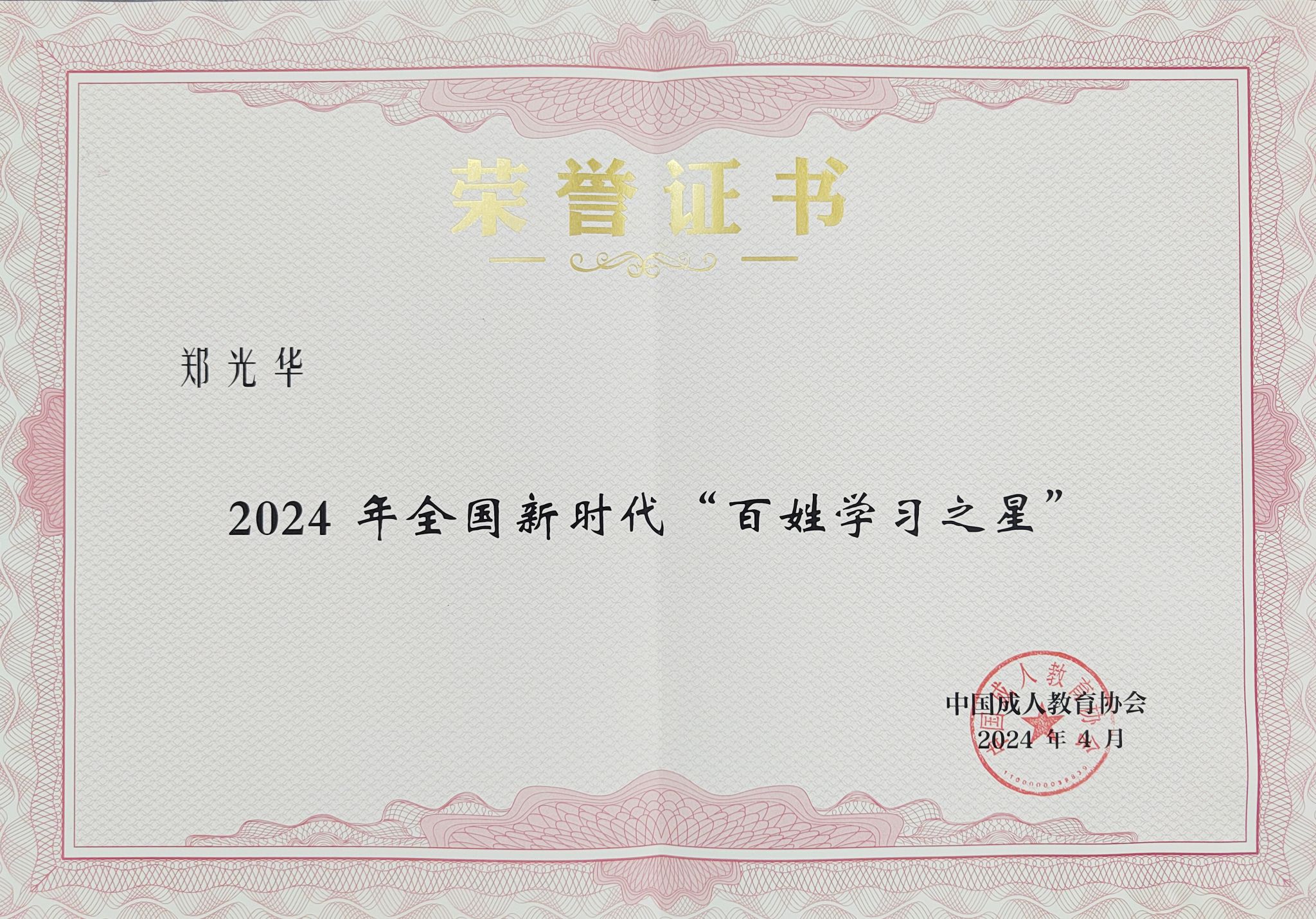 我校郑光华老师荣获2024年全国新时代“百姓学习之星”
