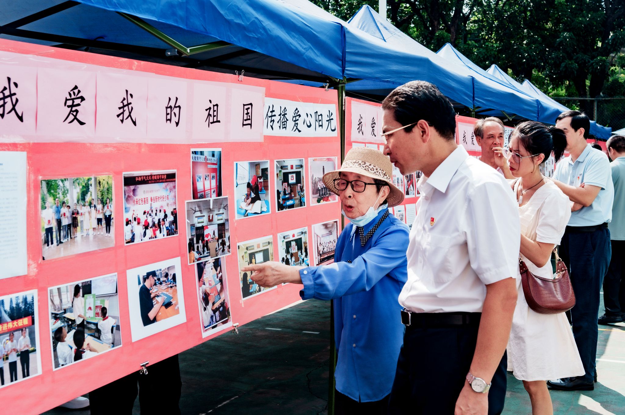 林晓敏和郑光华等一行人参观了展览,现场设有丹青刻纸开展爱国主义教育活动的现场展、流芳文化协会学生刻纸作品展、“朝阳读书会”书法展、法治教育展等多个丰富多彩的展区,吸引了众多师生驻足观赏。展览通过丹青刻纸等艺术形式,让师生们领略百年党史精神、深植红色基因、绘就红色画卷。