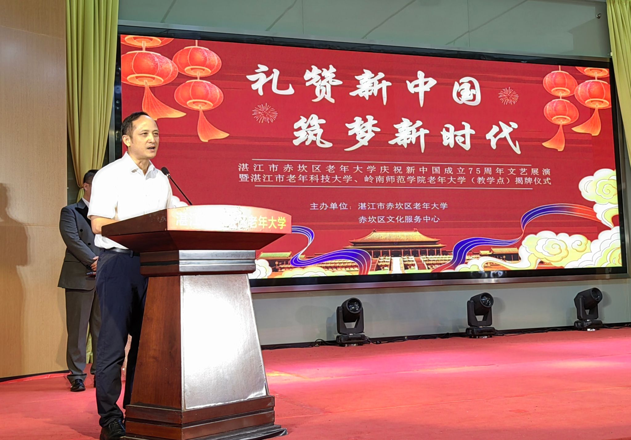 揭牌仪式现场气氛热烈,各界人士齐聚一堂,共同见证这一重要时刻。何江在仪式上发表了热情洋溢的讲话,对岭南师范学院老年大学赤坎区老年大学教学点的成立表示热烈祝贺,并对其未来发展寄予了厚望。