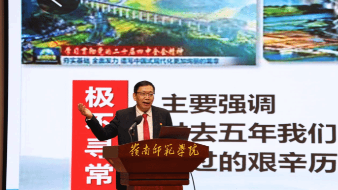 活动伊始,林晓敏对参与本次音乐党课的各界人士表示热烈欢迎,他指出,采用“音乐党课”这一生动鲜活的艺术形式,将深刻的理论阐述与经典的音乐旋律有机融合,寓理于情、寓教于乐,让党的创新理论在音符的流淌中更加深入人心,让全会精神的要义在艺术的共鸣中引发深刻思考。他强调,此次活动是校地协同创新理论宣讲的有益尝试,也为学校进一步创新党建工作形式、提升思政工作实效、深化校地融合共建提供了重要平台和启迪。他希望,通过这堂特殊的党课,以独特的艺术感染力激励师生和老同志更加深刻地领悟“两个确立”的决定性意义,更加自觉地增强“四个意识”、坚定“四个自信”、做到“两个维护”,将学习全会精神激发的热情,转化为扎根教育、潜心治学、服务社会的强大动力,为湛江跨越式高质量发展、为广东在推进中国式现代化建设中走在前列贡献岭师智慧和力量