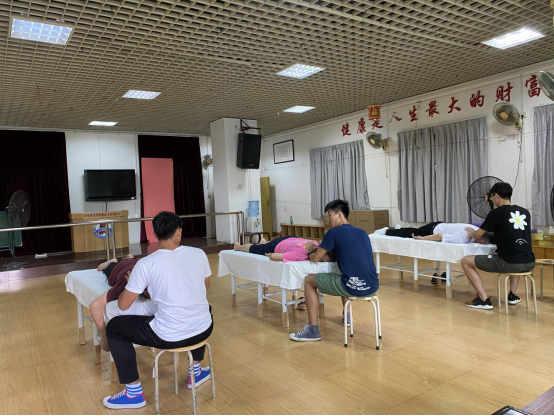 保健按摩课是离退休人员服务中心充分利用学校资源、联合我校体育科学学院开展的一项公益按摩福利,参与该课程的志愿服务队伍由体育科学学院19运动康复班与19运动人体科学班的志愿者组成,面向全体离退休老同志进行服务,每次课程可服务10余名老同志。