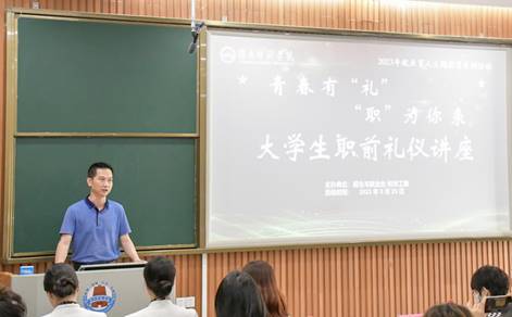 为深入学习宣传党的二十大精神,全面贯彻党的教育方针,落实立德树人根本任务,加强学生群体礼仪文化教育,增长学生群体社会人际交往能力与自身内在修养,助推提高学生群体就业成功率与社会职场适应能力。学校关工委、招生与就业处联合申办省教育系统关工委主办的“菁英未来”高校毕业生职前礼仪公益活动,525日下午,在我校第五栋教学楼F103室举行《青春有“礼”,“职”为你来——大学生职前礼仪》专题讲座。