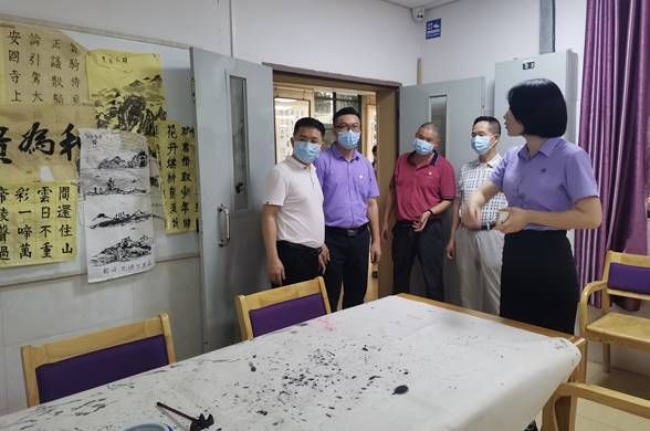 随后,欧海清一行在养老中心工作人员的陪同介绍下,深入老年服务站、老年餐厅、老年学堂、颐福医院、老年康复室、主题活动室等场所考察了“爱陪护”湛江养老服务中心的相关设施和环境,实地了解该养老中心医养结合的特色优势和老年学堂的文化养老。