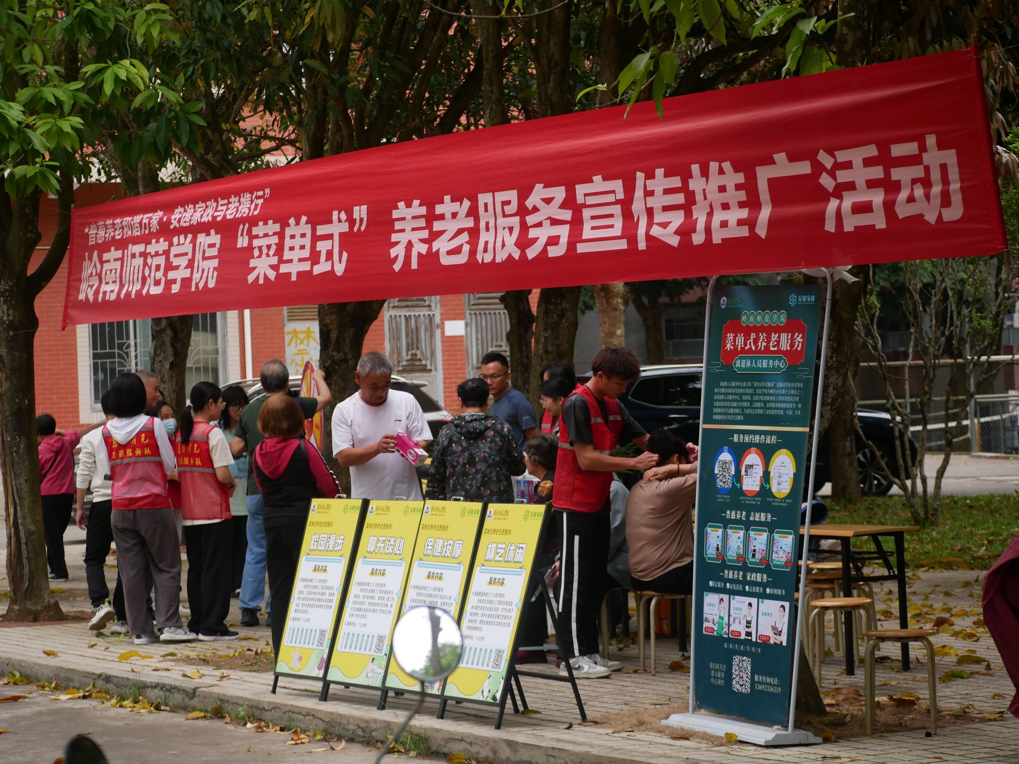 为深入推进学校“我为群众办实事”实践活动,切实为老同志提供优质暖心服务,建设岭师幸福家园,4月10日下午,离退休人员服务中心联合校友企业——安逸家政公司组织“燕岭霞光”志愿服务队在燕岭阁排球场旁开展“菜单式养老服务”宣传推广活动。