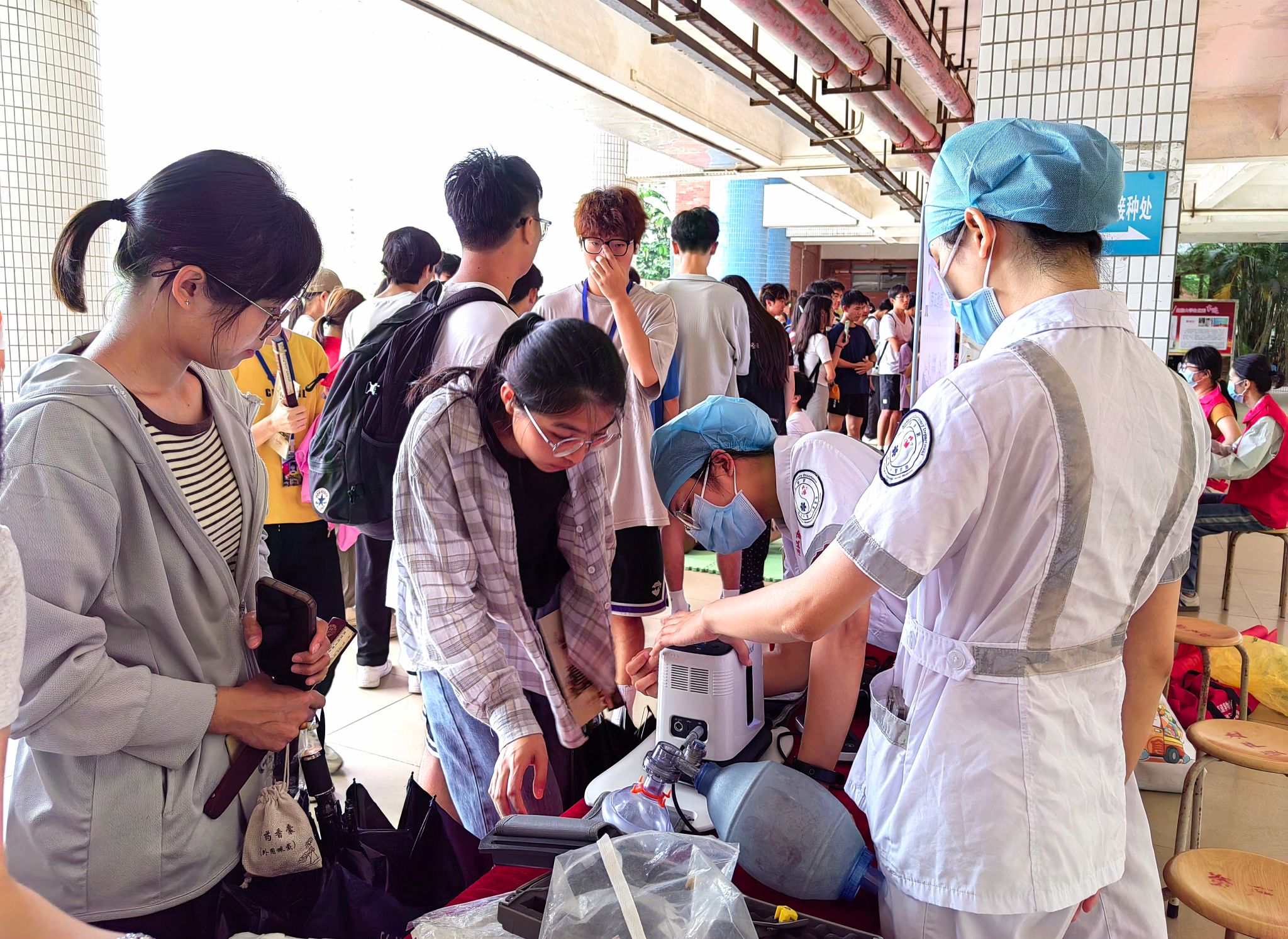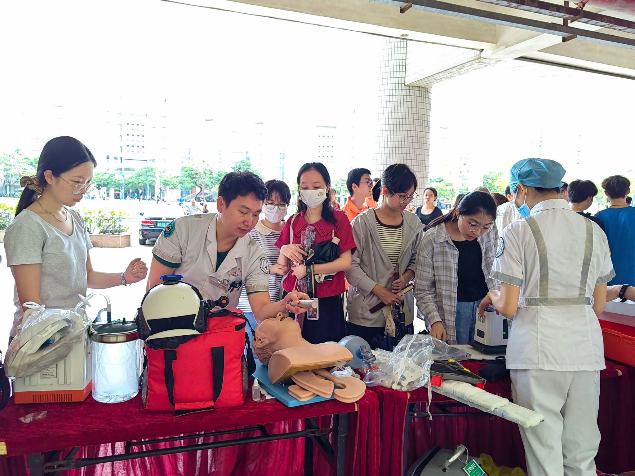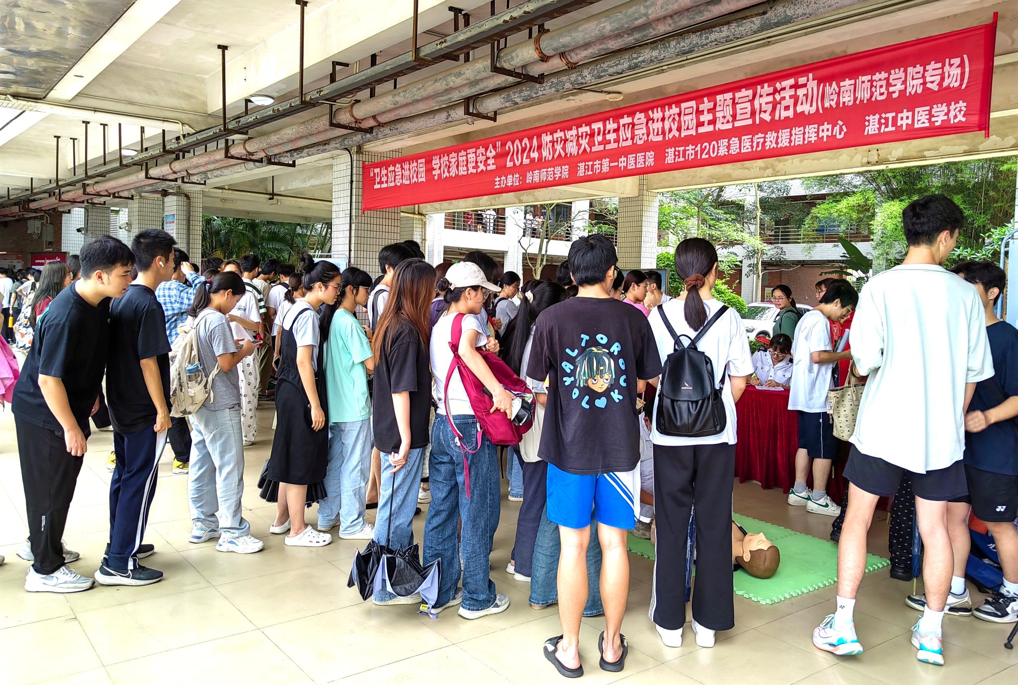 为贯彻落实省卫健委、省教育厅等五部门联合发文部署的通知精神。5月21日下午,校关工委协调校团委、门诊部,积极对接湛江市第一中医医院、湛江市120紧急医疗救援指挥中心、湛江中医学校等单位,联合在学校第四教学楼C栋一楼架空层举办“卫生应急进校园 学校家庭更安全”2024防灾减灾卫生应急进校园主题宣传活动。500多名学生受益参加活动。