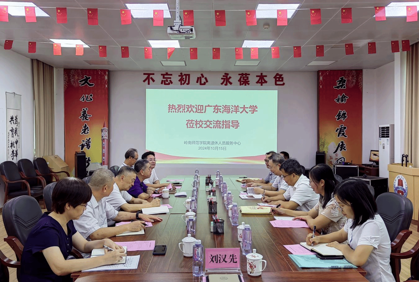广东海洋大学离退休党委副书记、离退休人员工作部副部长林善诚,学校关心下一代工作委员会常务副主任王仁谦,副主任冯汝智,离退休人员服务中心副主任叶德波等人员还就离退休和关工委工作具体开展过程中的相关问题作了补充交流发言。