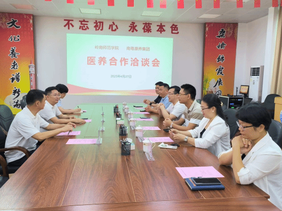 4月27日下午,广东南粤康养产业发展集团执行董事文锦仁率高层领导团队到校举行医养合作的洽谈会,围绕为退休教工提供高质量医疗养老一体化服务展开深入交流,共绘医养合作新蓝图。