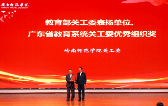 党委副书记林晓敏为教育部关工委表扬单位、广东省教育系统关工委优秀组织奖颁奖