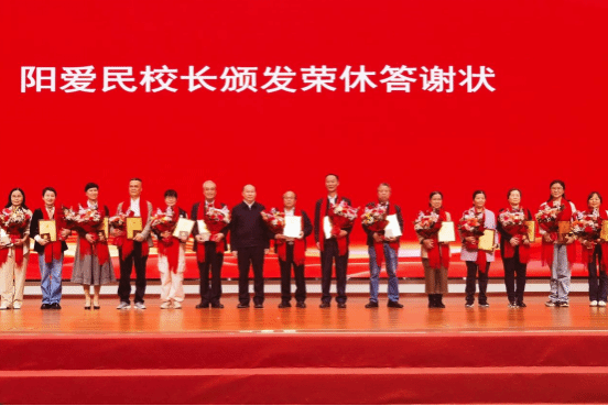 会议为去年光荣退休的教职工举办荣休仪式,表彰了2024年离退休工作先进集体和先进个人、2024年“读懂中国”活动获奖单位及个人。阳爱民为荣休教职工代表颁发荣休感谢状,为“老有所为”先进个人颁发了证书,并向离退休老同志表达了崇高敬意和衷心祝福,向关心支持离退休工作的有关职能部门和离退休工作一线人员表示诚挚感谢。