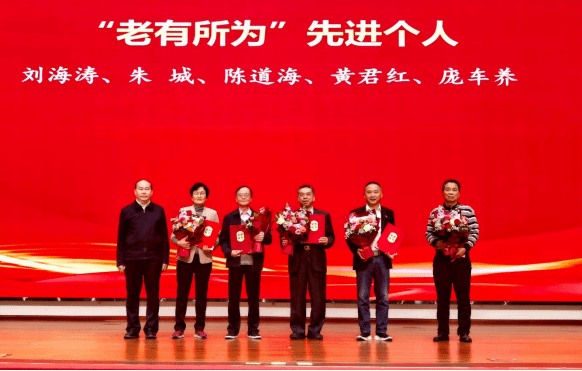 校长阳爱民为“老有所为”先进个人颁发证书