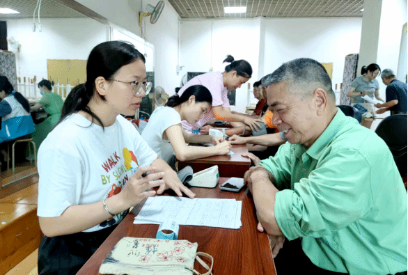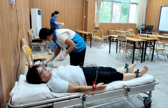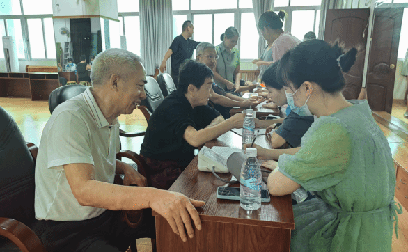 为推进医疗养老服务,6月26日,寸金街道社区卫生服务中心在燕岭阁二楼老干活动中心为我校60岁以上老人开展免费健康体检及家庭医生服务登记,并建立健康档案,进行健康管理,提供健康咨询指导和随访服务,共100余名老同志参加体检。