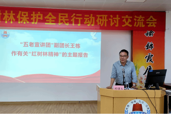 岭南师范学院“五老宣讲团”副团长、原法政学院王栋副教授则围绕“红树林精神”作了精彩分享。他主要从“湛江红树林的生态、经济、社会及文化价值挖掘”“红树林精神的内涵提炼与传播”“红树林相关产业及城市建设的文化标识打造”等三个方面,深刻诠释红树林扎根滩涂、坚韧不拔的品格,进一步坚定了现场人员守护生态家园的信念,引发全场共鸣。