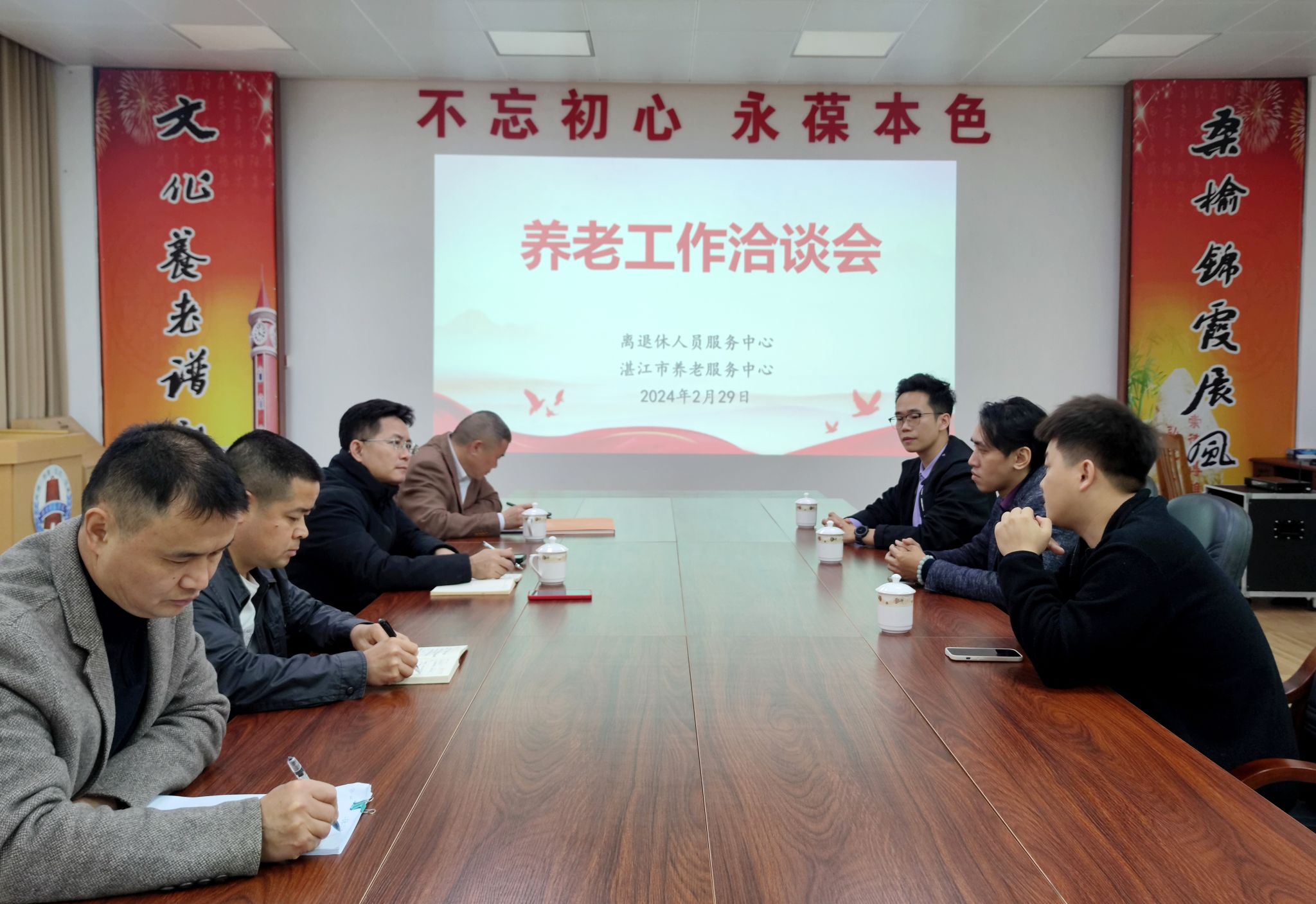 为深入贯彻落实学校年度工作会议精神,大力推进“医养绿色通道”搭建工作,2月29日下午,离退休人员服务中心在离退休会议室与“爱陪护”湛江市养老服务中心召开养老工作洽谈会,就下步开展机构养老合作的相关事宜和细节进行洽谈和商定。“爱陪护”湛江市养老服务中心市场营销部经理陈保良,离退休人员服务中心党委书记、主任欧海清,副主任叶德波等工作人员出席会议。