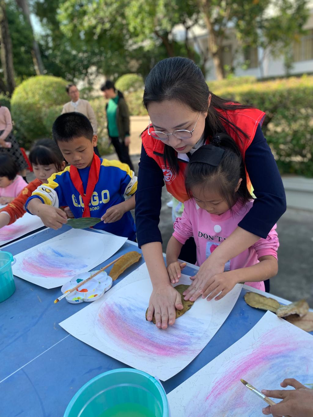 罗玉琴与孩子一同作画(罗玉琴供图)