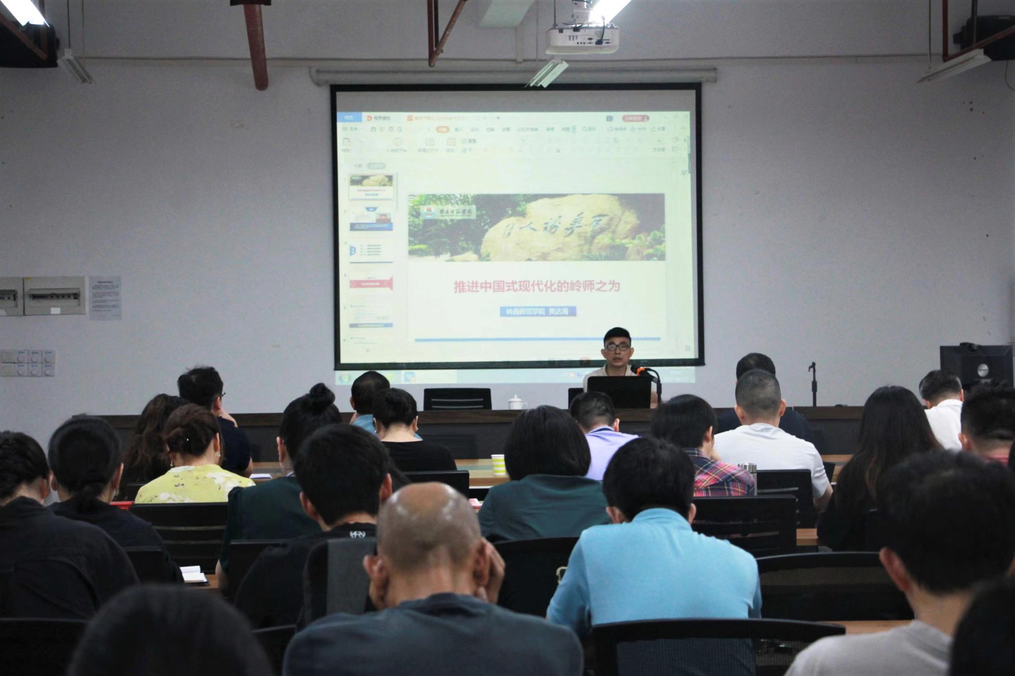 黄达海紧扣主题,从中国式现代化的理论逻辑、中国式现代化的主要内容、中国式现代化的总体安排、中国式现代化的岭师之为等四个方面进行了深入浅出的阐释。