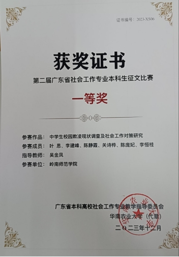 我院社会工作专业开办于2006年,是广东省一流本科专业建设点、广东省专业综合改革试点专业,并在2024年获得专业硕士学位授予权。