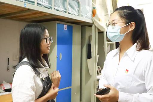 在走访的过程中,李从来老师与吴桂碧老师深入了解同学们假期之后的返校情况,叮嘱同学们在日常生活中要按照学校疫情防控工作指引做好防护措施,注意添衣保暖和保持宿舍通风。学生党员代表还就日常体温检测、发热情况处置等情况与同学们进行交流。