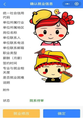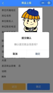 信息提交后,会弹出核对页面,请务必仔细检查核对个人信息,检查完毕后确认提交就业信息。