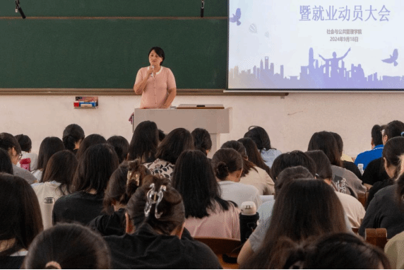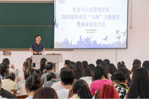 9月18日,社会与公共管理学院在第三教学楼611室召开2025届毕业生“心海”主题教育暨就业动员大会。学院全体领导班子成员,各毕业班班主任、毕业班辅导员以及2025届全体毕业生出席本次大会。大会由学院就业工作专职辅导员李从来老师主持。