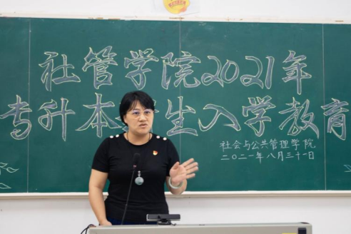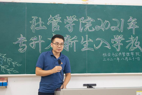 为做好2021年专升本新生教育管理工作,帮助新生了解所在专业和未来发展方向,增强专业自信,8月31日晚上,社会与公共管理学院于弘雷楼107室召开2021年专升本新生入学教育大会。党委副书记邓蔚婵,正处级辅导员钟明杰,社工系党支部书记钟耀林,社工系黄家滨老师、胡志利老师,班主任余艳莉老师出席本次会议,会议由李从来老师主持。