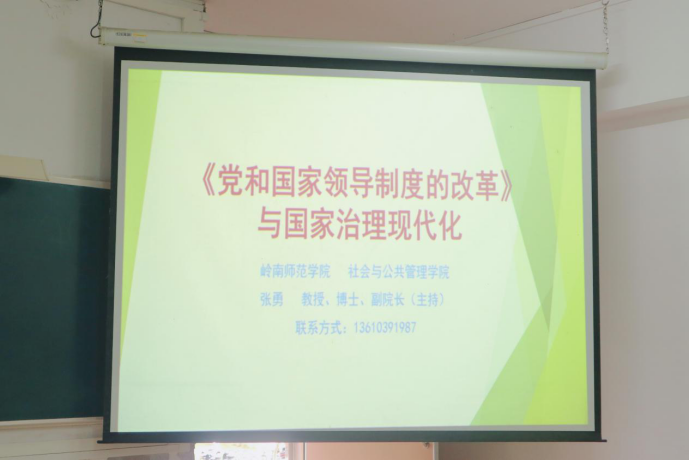 4月21日上午,社管学院张勇副院长(主持)在弘雷楼204室为20级公管2班讲授“思政第一课”,讲授题目为“《党和国家领导制度的改革》与国家治理现代化”。