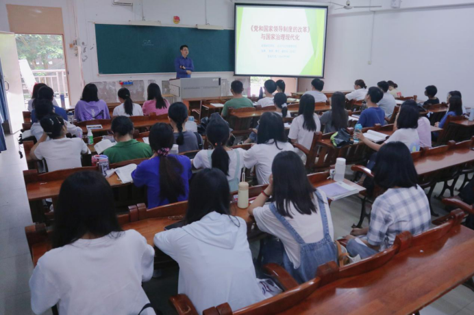 1980年8月18日,时任国务院副总理的邓小平,在中央政治局扩大会议上作了题为《党和国家领导制度的改革》的重要讲话,邓小平直面党和国家当时面临的问题,深究我国的制度与改革的大方向。张勇主要围绕《党和国家领导制度的改革》的历史背景、主要内容、理论特点三大方面,深入诠释邓小平这次重要讲话对国家治理现代化的重大影响。张勇的深入讲解,启发同学们探究每一内容背后的缘由及其重要意义并进行深入思考。