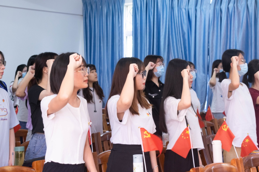 会议伊始,全体与会人员面向鲜红党旗,举起右拳,重温入党誓词,表达为共产主义奋斗终身的坚定信仰。