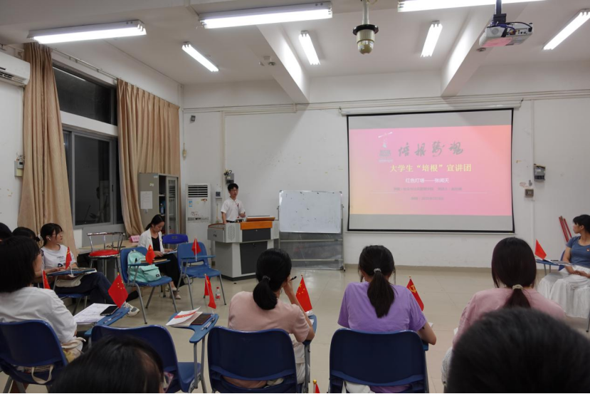 7月3日,市大学生“青马工程”学生骨干培训班成员、校大学生“培根”宣讲团成员、社管学院学生党支部成员赵世康于综合楼B910开展了主题为“红色灯塔——张闻天”的党史宣讲,社管学院学院辅导员钟明杰、学生党支部书记吴桂碧以及全体学生党员参加了本次宣讲会。