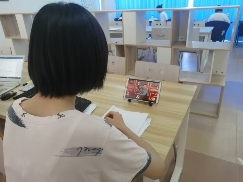 在集中收听收看直播现场,大家跟随大会议程全体肃立,奏唱国歌,并认真专注地学习领会习近平总书记重要讲话精神,共同庆祝中国共产党成立一百周年,共同回顾中国共产党百年奋斗的光辉历程,共同展望中华民族伟大复兴的光明前景。