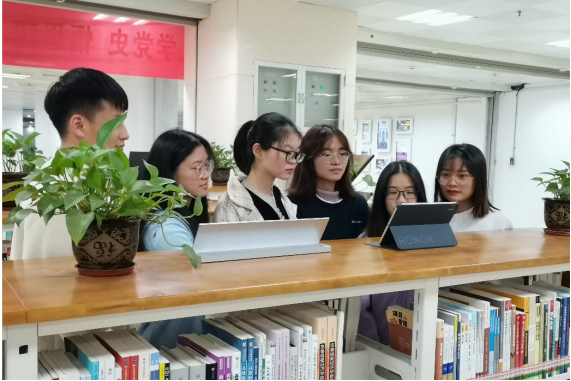学生党员在图书馆集体观看节目