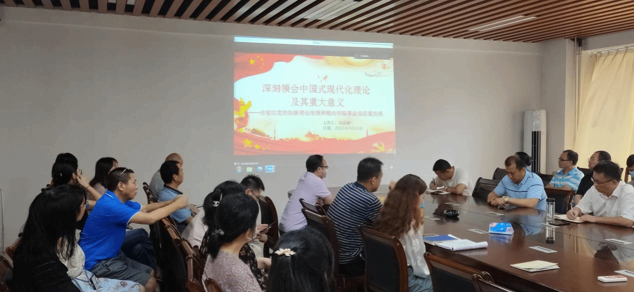 会上,冯亮如以“深刻领会中国式现代化理论及其重大意义 自觉以党的创新理论统领和推动学院事业高质量发展”为题,谈了学习认识与体会。他指出,中国式现代化理论在深刻总结我国和世界不同国家现代化实践经验教训的基础上,全面系统回答了中国作为人口规模巨大的社会主义国家,实现现代化的目标、道路、原则、方向、路径、方法、重点和着力点、本质要求、世界意义等一系列重大理论和实践问题,实现了现代化理论的重大创新。中国式现代化理论是习近平新时代中国特色社会主义思想的重要组成部分,是全面建设社会主义现代化国家、以中国式现代化全面推进中华民族伟大复兴的科学理论指南。他提出,中国式高等教育现代化是中国式现代化的重要组成部分,是实现教育现代化的重要保证,要坚持高质量发展,进一步探索完善高质量教育体系,充分激活新发展环境下学院办学要素所蕴含的潜能,力求学院核心竞争力和社会影响力更强,以学院高质量发展的优异成绩书写高等教育现代化的实践篇章。