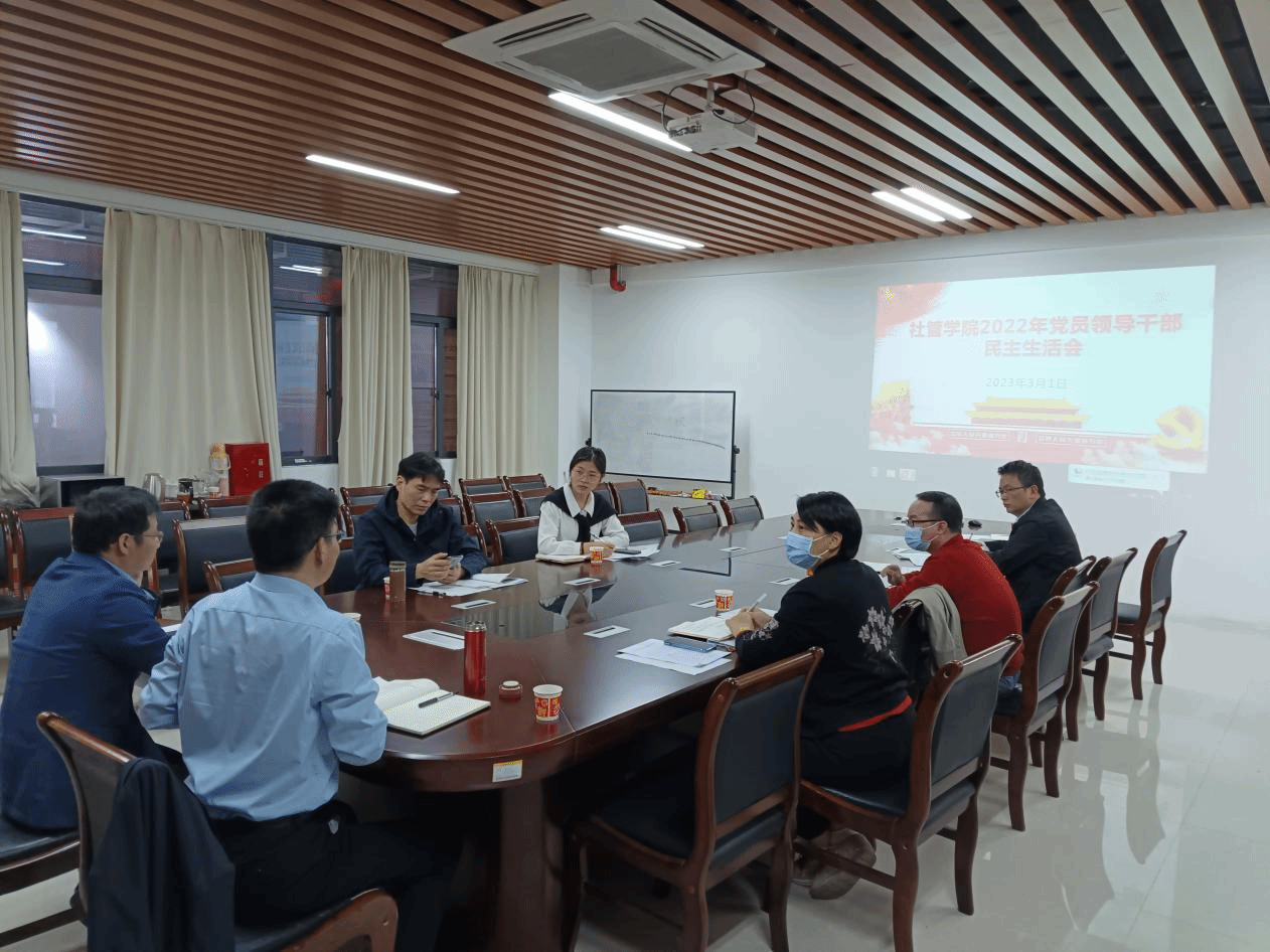3月1日下午,社会与公共管理学院党委在教五D303-2室召开2022年度党员领导干部民主生活会。会议由学院党委书记冯亮如主持,学院领导班子成员参加会议。
