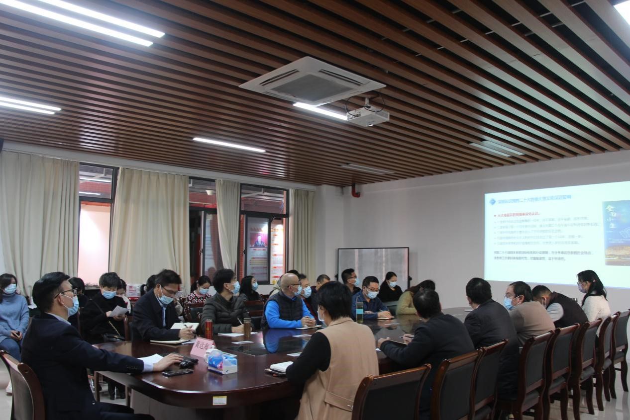 2022年12月14日,学校党委副书记、理论宣讲团团长黄达海到社管学院宣讲党的二十大精神。宣讲会在第五教学楼D303-2室举行,宣讲会由社管学院党委书记冯亮如主持,学院全体教职工参加。