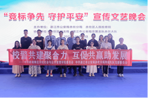 为进一步加强校警合作,增强我校师生和民众的法治意识,提升党建工作质量,10月13日晚上,社会与公共管理学院协同湛江市公安局赤坎分局刑侦大队联合举办了以“党建引领,校警反诈”为主题的反诈普法宣传活动。参与本次活动的人员有湛江市公安局赤坎分局刑侦大队支部副书记、教导员李斌,社管学院党委副书记邓蔚婵,学工办老师吴春艳等教师代表、学生代表和部分话剧队成员。