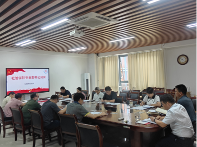 6月3日上午,社管学院党委于第五教学楼D303-2室召开社管学院党支部书记例会,会议由学院党委书记冯亮如主持,学院领导班子成员和各党支部书记、支委参加。