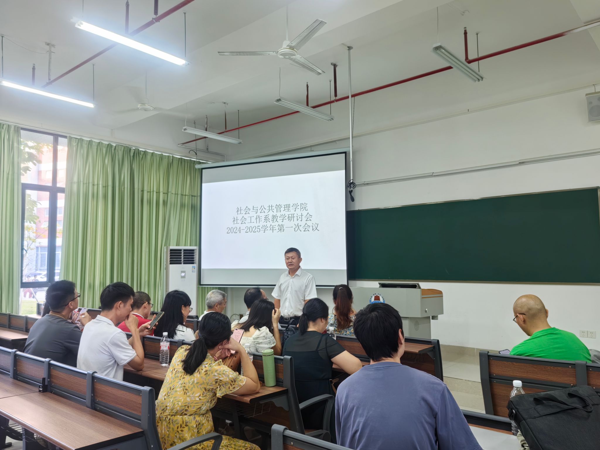 9月18日下午,社会工作系在第五教学楼F101教室顺利召开本学期首次教学研讨会。会议由我系主任谢正富老师主持,全体教师积极参与,共同探讨新学期的教学规划与发展。