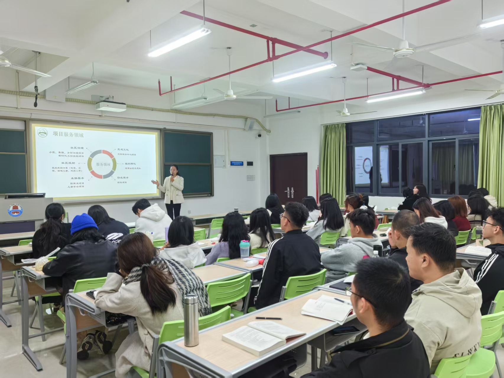 分享会上,蔡月圆校友以亲切的口吻开启了她的讲述。她首先回顾了自己在我校社会工作系的学习时光,那些在课堂上的专注聆听、在小组讨论中的思维碰撞、在实习实践中的探索总结,都成为了她职业生涯中宝贵的财富。随后,蔡月圆校友详细分享了她在清远市青桥社会工作服务中心的工作经历。她介绍了中心开展的各类项目,如社区治理服务、青少年心理健康辅导、贫困家庭帮扶等。在讲述每一个项目时,她都结合具体案例,生动地展示了社会工作者在工作中面临的挑战与机遇以及如何运用专业知识和技巧去解决问题。她还特别强调了社会工作者在工作中需要具备的素质和能力。她认为,社会工作者要有强烈的责任心和使命感,始终把服务对象的利益放在首位;要有良好的沟通能力和团队协作精神,能够与服务对象、同事和合作伙伴建立良好的关系;要有创新意识和学习能力,不断探索新的工作方法和模式,以适应社会发展的需求。
