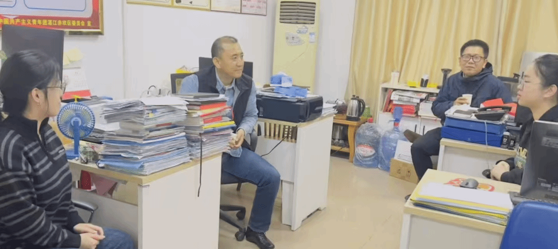 在赤坎区融媒体中心,沈洪涛一行先后与实习生展开亲切交流,重点询问日常工作内容,从新闻素材收集、视频脚本构思到后期协助剪辑等环节逐一了解,并关切询问工作强度、时间分配及适应情况。实习生详细汇报了实习一个月以来的工作进展,分享了在实践中的收获与转变。