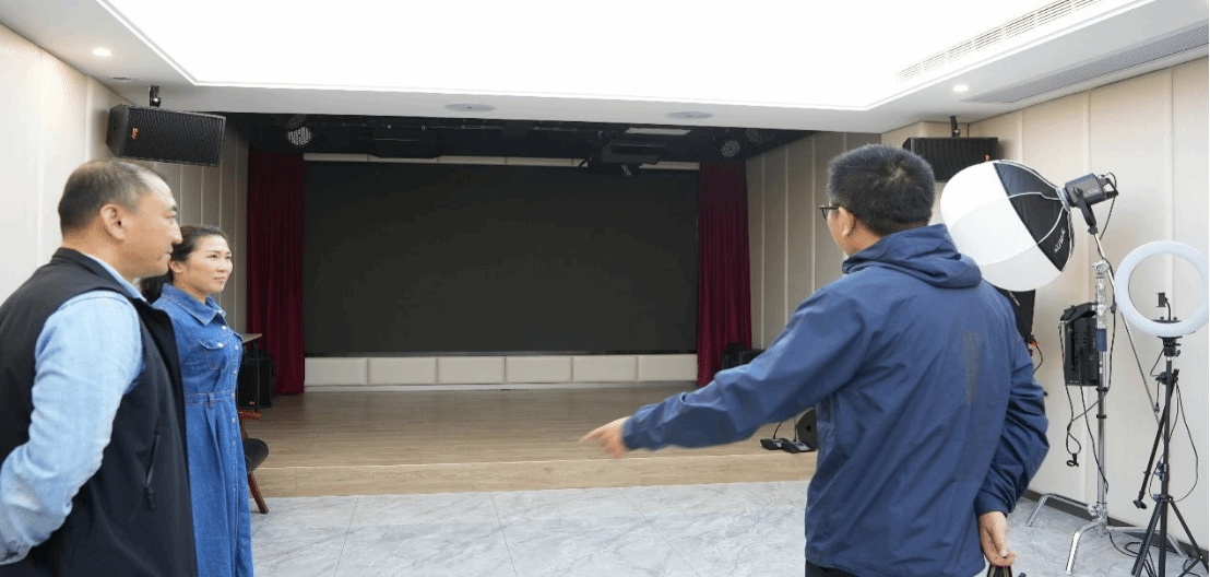 随后,中共湛江市赤坎区委宣传部副部长王华俊及赤坎区融媒体中心主任何美幸引领沈洪涛一行参观中心主要办公区域,逐一介绍了操控室、演播室、录音室、器材室等核心工作场所,详细讲解了各区域的功能定位及运作模式。在器材室。王华俊副部长强调,中心始终把实习生实践能力培养放在首位,不仅常规拍摄器材对实习生开放,还系统组织开展无人机操作、公文写作等专业技能培训。